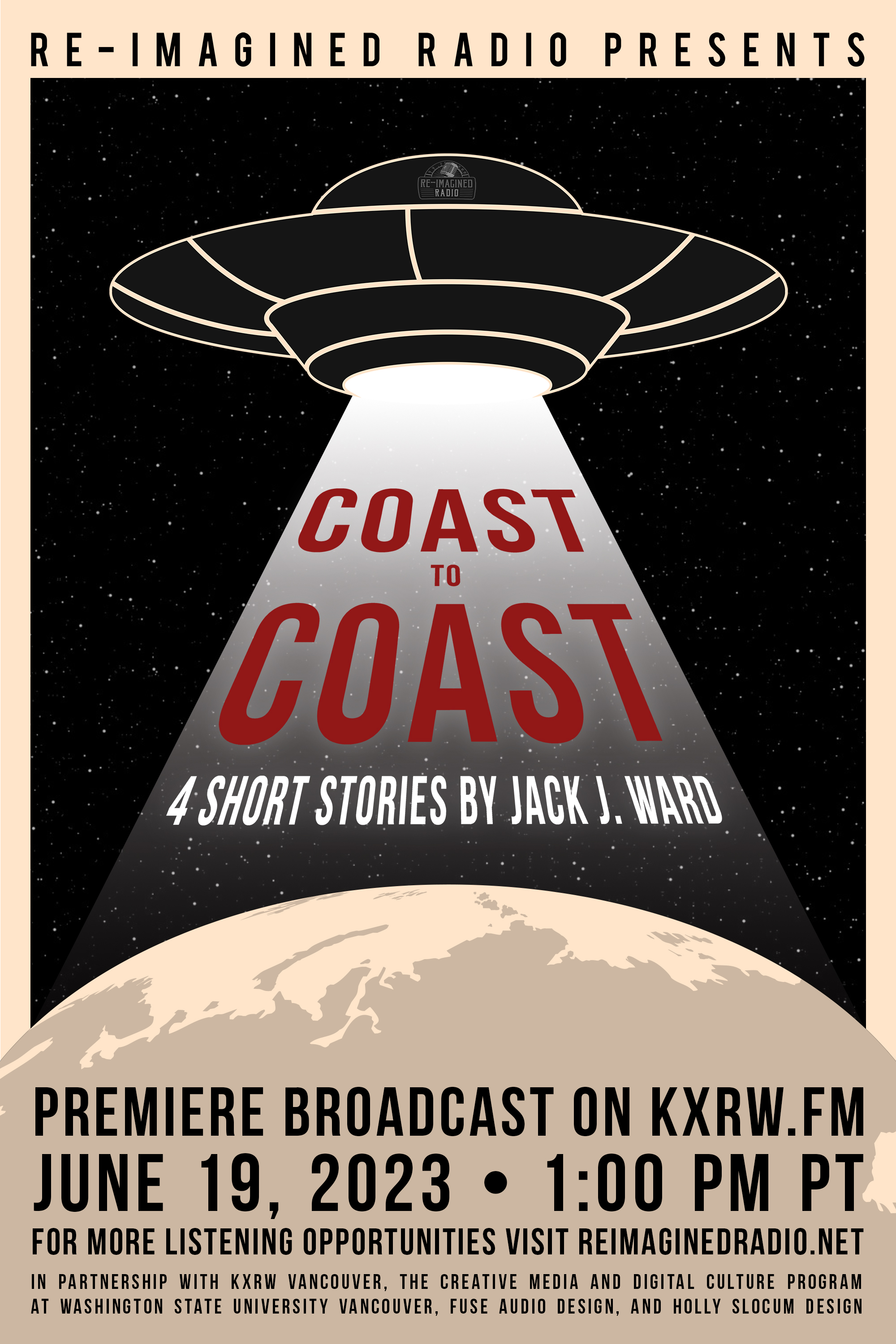 Re-Imagined Radio presents four short science fiction radio stories by Jack J. Ward, Canadian award-winning writer, director, actor, and producer of audio drama. He lives in Halifax, Nova Scotia. That's about as far East as one can drive a car in Canada, before running into the Atlantic Ocean. We call this episode "Coast to Coast," to signify that Jack and his radio dramas comes to us here on the Northwest Coast of the United States from the Northeast Coast of Canada, through radio, the teleportal trans-experiental time warp theatre of the mind.