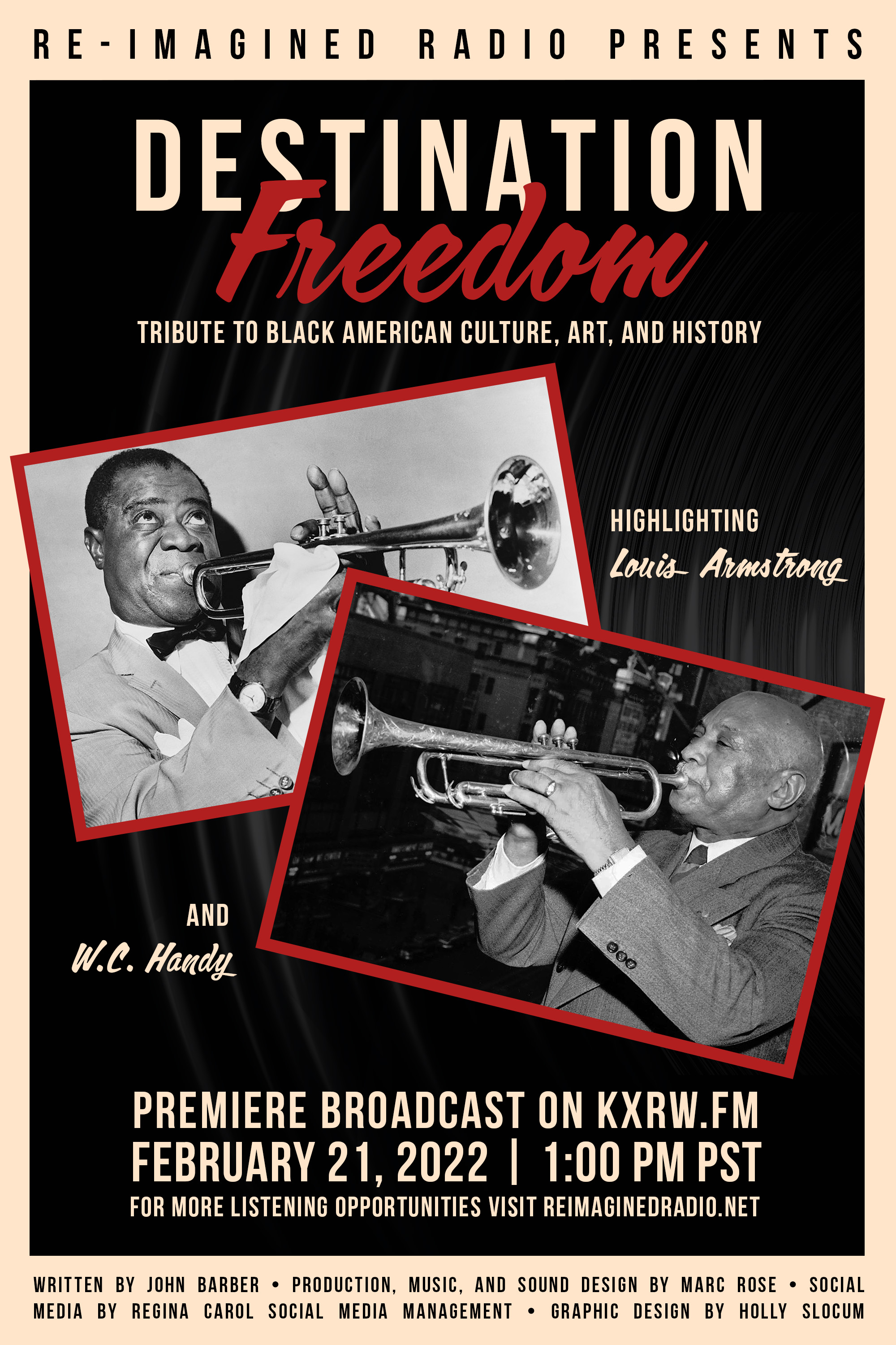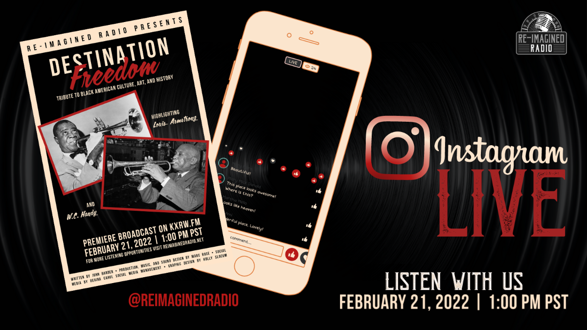 Re-Imagined Radio pays tribute to Black History Month and Destination Freedom, a radio series offering thematic episodes about Black American music, art, science, medicine, history, and more. We sample from "The Father of the Blues" to highlight W. C. Handy, and "The Trumpet Talks" to highlight Louis Armstrong.