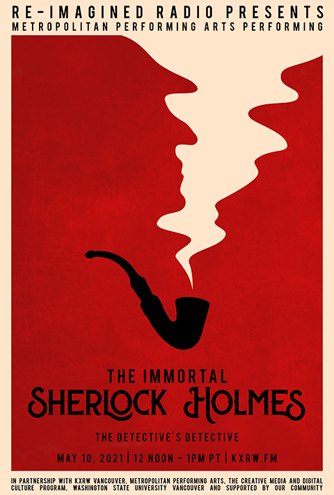Re-Imagined Radio presents Metropolitan Performing Arts and other community volunteers performing The Immortal Sherlock Holmes. Adapted from a stage play by William Gillette, itself adapted from one by Arthur Conan Doyle, we celebrate the greatest detective who never lived, yet will always be immortal, the detective's detective, Sherlock Holmes.